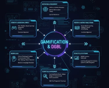 The integration of game mechanics to enhance motivation, engagement, and problem-solving skills.